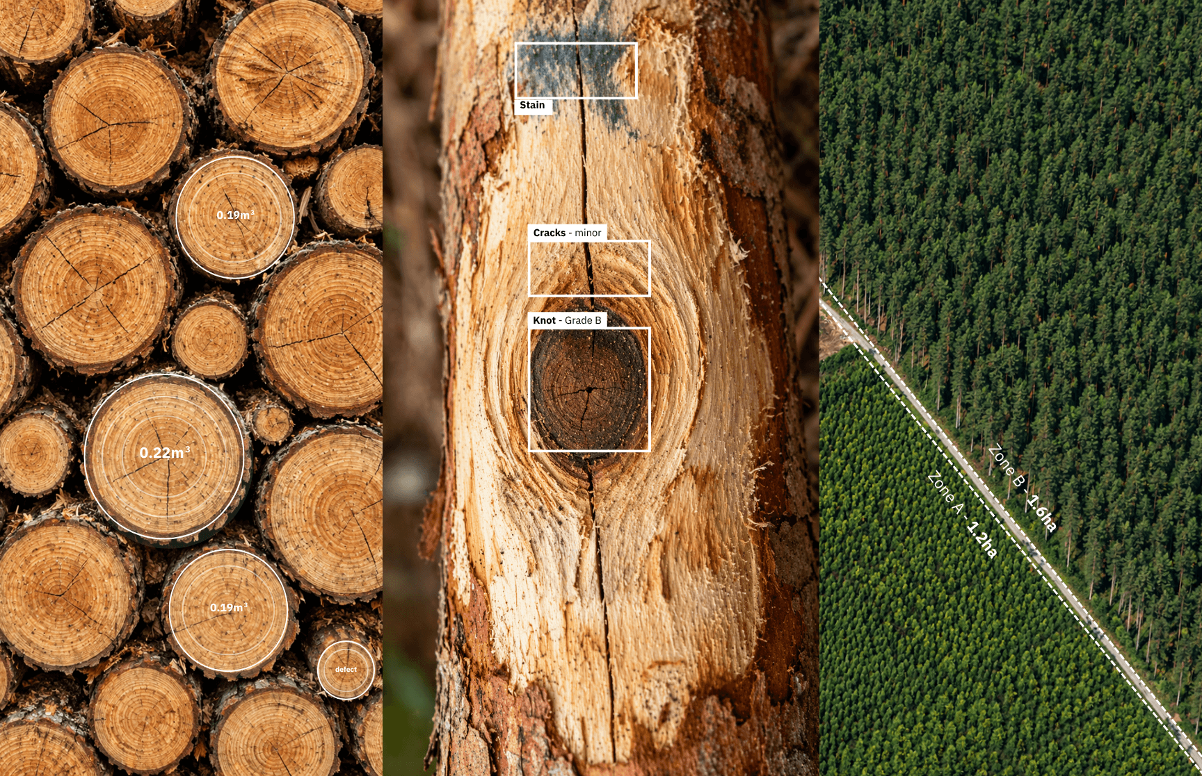 The timber industry runs on measurement, and most of it is still done by hand. Estimating the volume of a log pile traditionally means either water displacement (impractical at scale) or sensor-equipped machines that still need significant human input. Defect detection relies on visual inspection, which catches surface issues but routinely misses internal rot and structural weaknesses hidden beneath the bark. And at the forest level, operators lack the real-time data needed to forecast yields or respond to shifting market demand before margins erode.